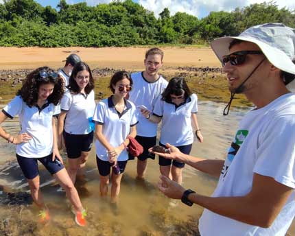 As atividades são desenvolvidas através de inserção em ambiente preservado, com trilhas monitoradas em trechos de mangue/praia/restinga/costão rochoso/floresta, na dinâmica de um professor da instituição para cada grupo de cerca de dez estudantes, inclui observações de campo, palestras, debates e o desenvolvimento de um trabalho de grupo com metodologia exclusiva.