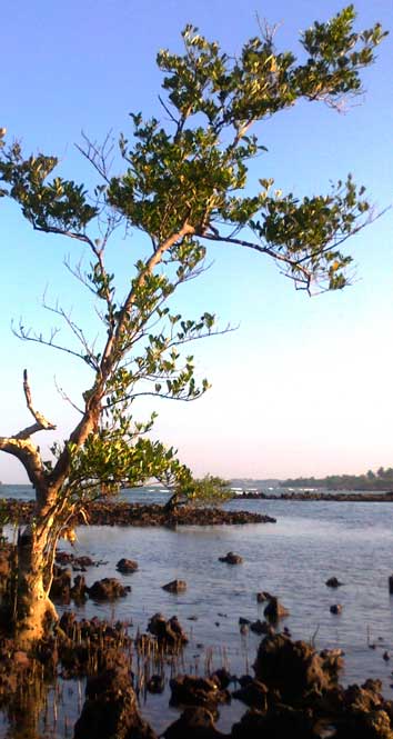 A praia e o mangue litorâneo são formados com rochas sedimentares de ferro arenítico, por toda a costa. Durante a maré baixa, é possível caminhar-se por cima destes arrecifes entre centenas de lagoinhas e poças de maré, com algas, peixes, crustáceos, moluscos, tal qual um jardim marinho rico de flores, cores, vida e movimento.